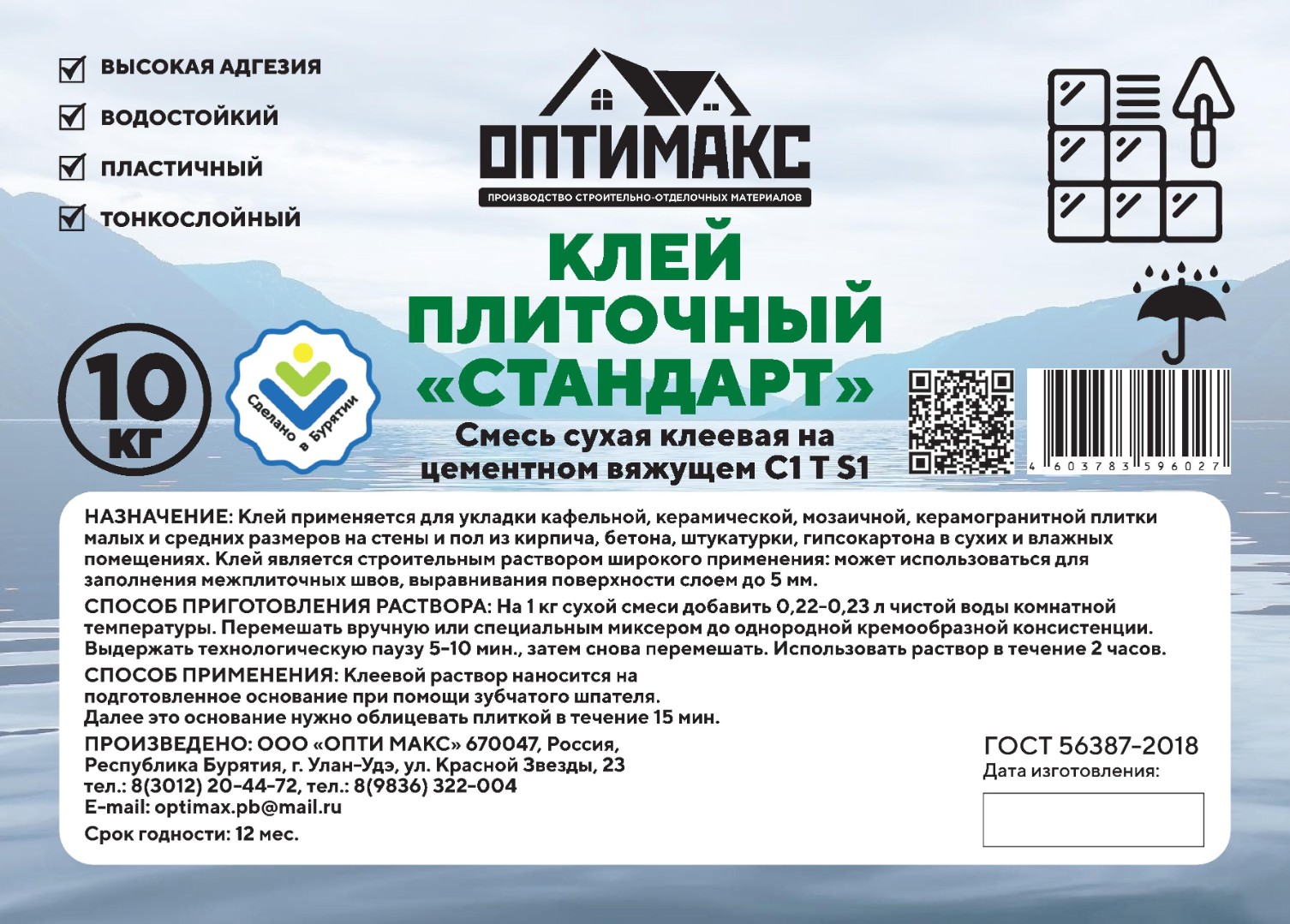 Клей плиточный "ОПТИ МАКС Стандарт", фасовка 10 кг