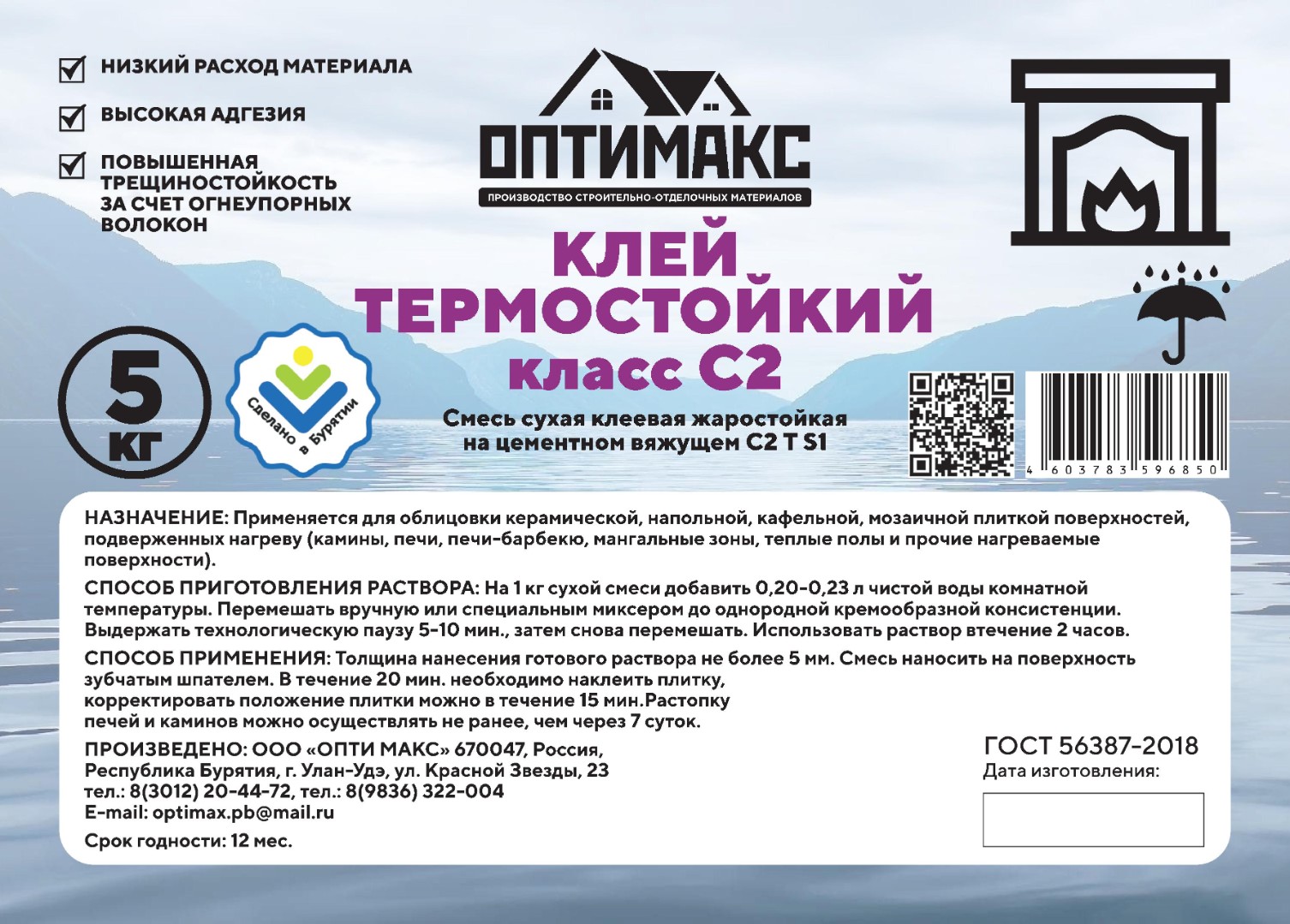 Клей термостойкий "ОПТИ МАКС" класс С2, фасовка 5 кг
