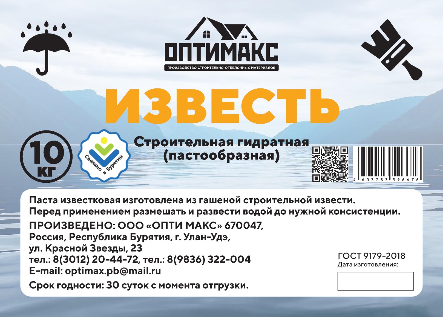 Паста известковая ГОСТ 9179-2018 (известь строительная пастообразная), фасовка 10 кг