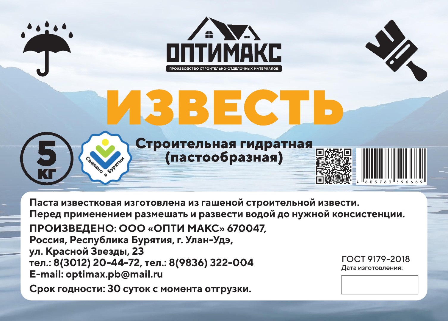 Паста известковая ГОСТ 9179-2018 (известь строительная пастообразная), фасовка 5 кг