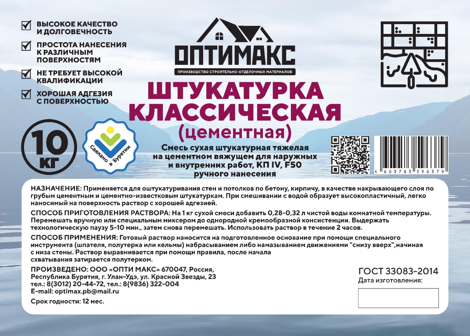 Штукатурка "ОПТИ МАКС Классическая" на цементной основе, фасовка 10 кг