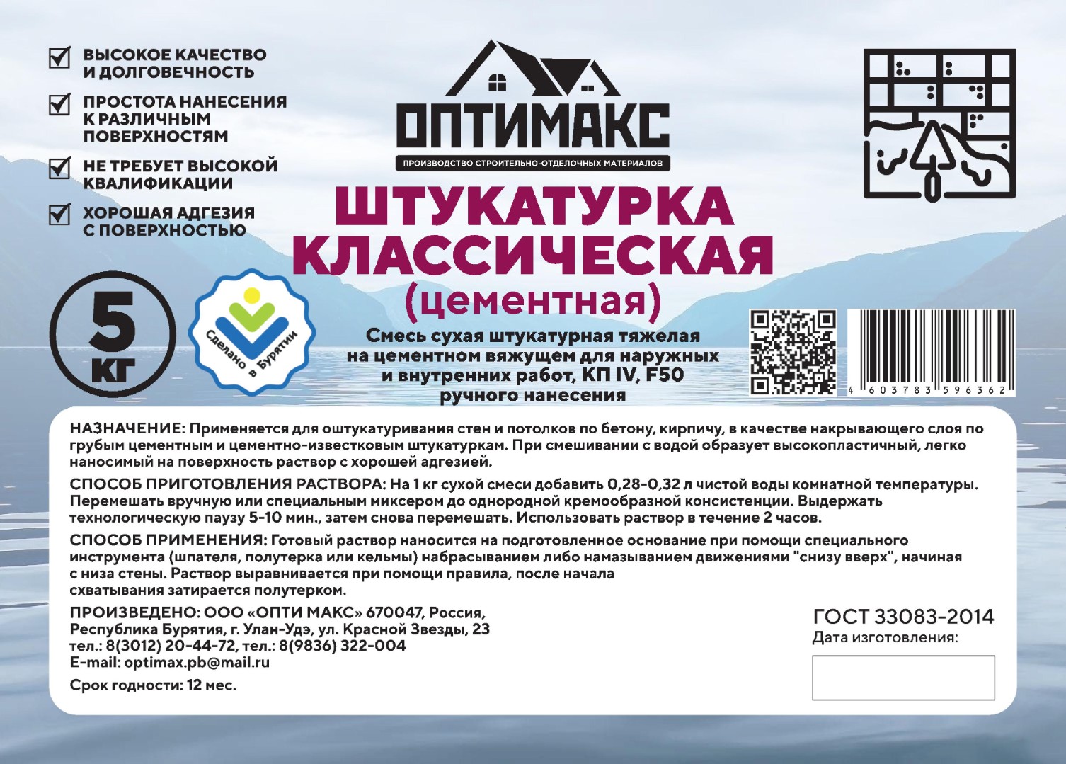 Штукатурка "ОПТИ МАКС Классическая" на цементной основе, фасовка 5 кг