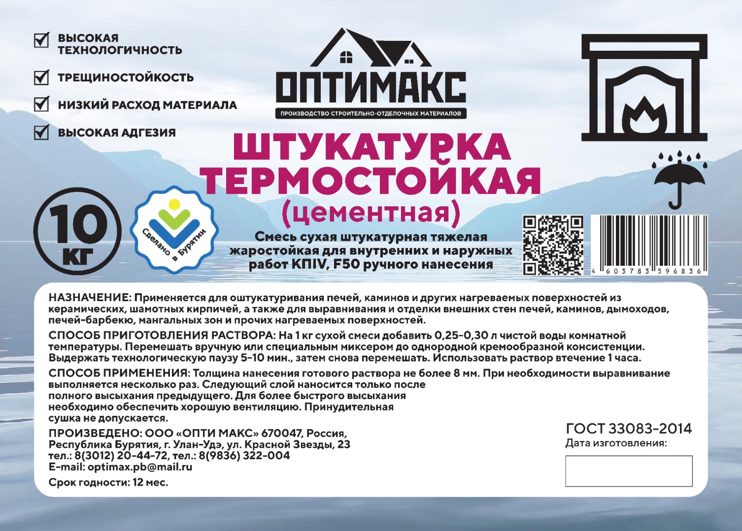 Штукатурка термостойкая цементная "ОПТИ МАКС", фасовка 10 кг