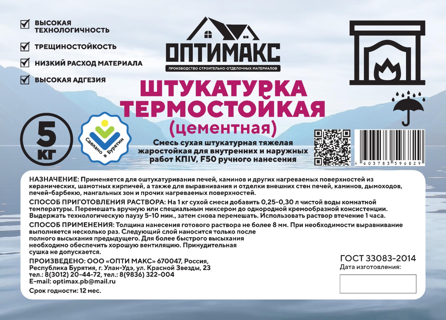 Штукатурка термостойкая цементная "ОПТИ МАКС", фасовка 5 кг
