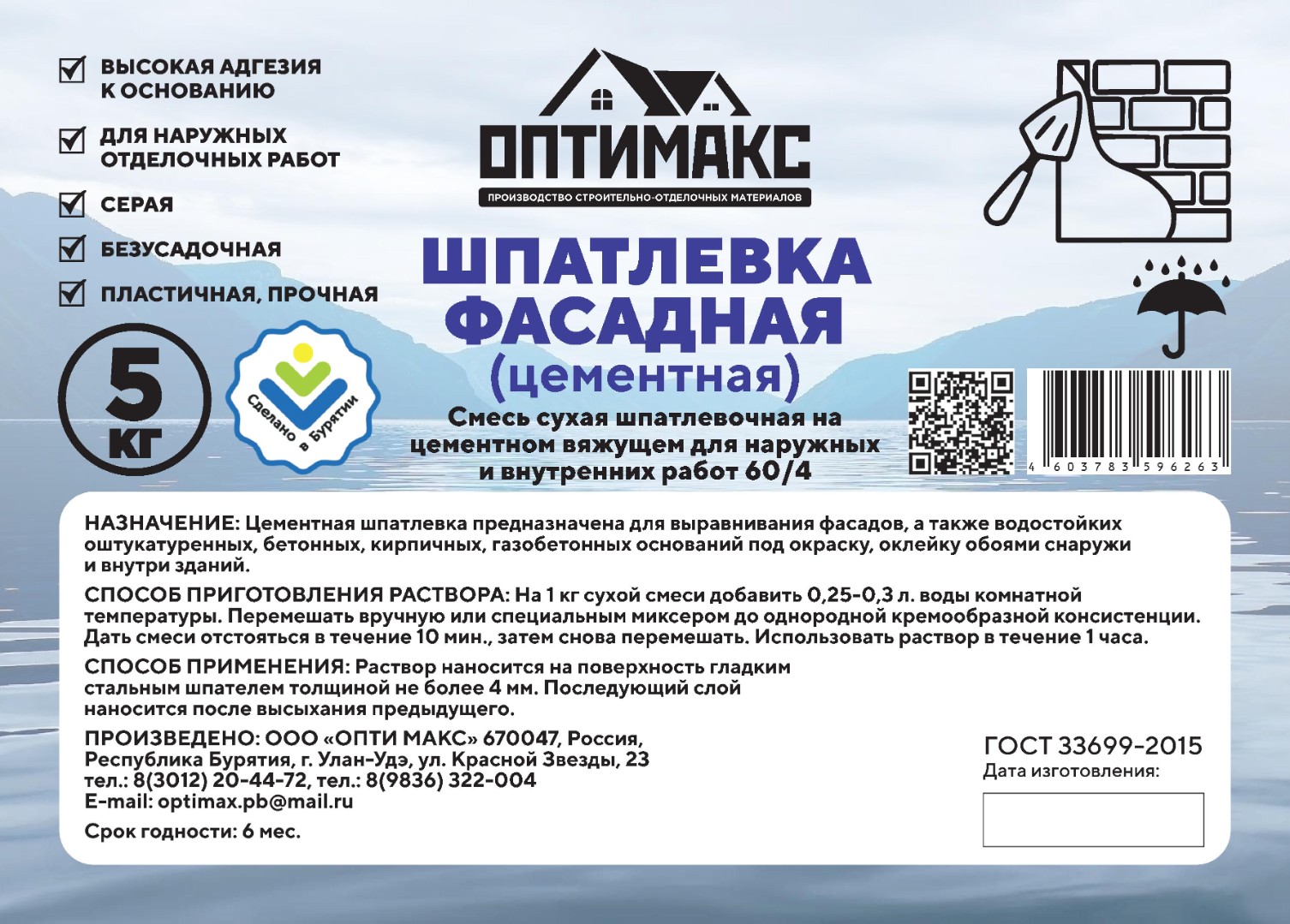 Шпатлевка "ОПТИ МАКС Фасадная", фасовка 5 кг