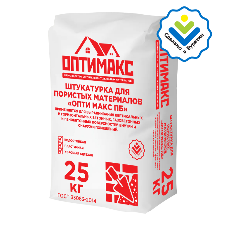 Штукатурка для пористых материалов "ОПТИ МАКС ПБ", фасовка 25 кг